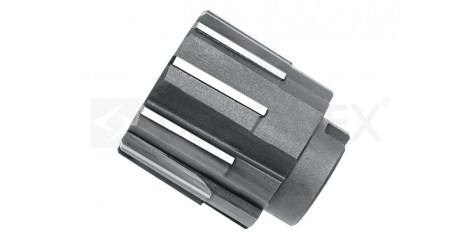 Rozwiertaki nasadzane DIN 8054 z lutowanymi płytkami z drobnoziarnistych węglików spiekanych. Ostrza proste, od 8 do 12 w zależności od średnicy rozwiertaka. Nierównomierny podział, kąt pochylenia λ=-3° oraz promieniowy kąt natarcia γ=3° pozwalają na wykończeniowe, wydajne rozwiercanie otworów w stalach, żeliwach i metalach nieżelaznych o twardości do 45 HRC. Zakres rozwiercanych otworów: od Ø32 do Ø75 w tolerancji H7. Na życzenie klienta dostępne również średnice pośrednie, w klasie IT 7 i powyżej.