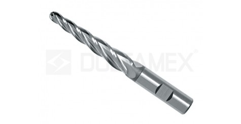 Frezy trzpieniowe zbieżne, z czołem kulistym, 4-ostrzowe, z chwytem walcowym z płaską, długie.