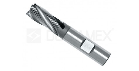 Frezy trzpieniowe walcowo-czołowe z łamaczem wióra, wieloostrzowe, z chwytem walcowym z płaską, krótkie, HSS-E.