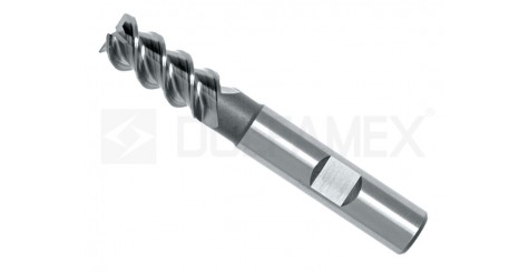 Frezy trzpieniowe SN60° walcowo-czołowe z ostrzami centralnymi, 3-ostrzowe, z chwytem walcowym z płaską, krótkie.