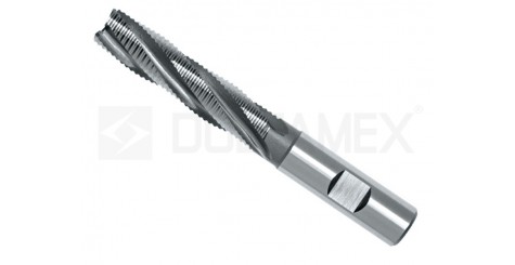 Frezy trzpieniowe walcowo-czołowe z łamaczem wióra, wieloostrzowe, z chwytem walcowym z płaską, długie.