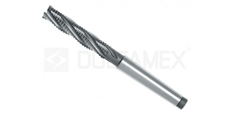 Frezy trzpieniowe walcowo-czołowe z łamaczem wióra, wieloostrzowe z chwytem Morse'a, długie, typ łamacza NF, HSS-E.
