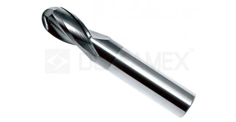 Frezy trzpieniowe DIN 6527 RN z czołem kulistym, 2-ostrzowe, długie, chwyt walcowy gładki.