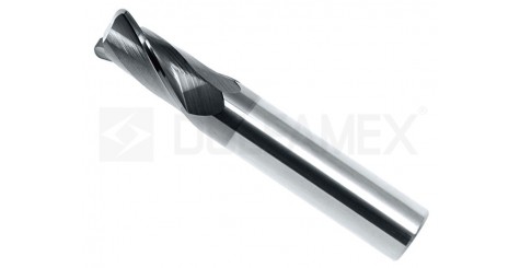 Frezy trzpieniowe DIN 6527 z promieniem na narożu, 2-ostrzowe, długie, chwyt walcowy gładki.